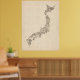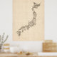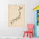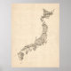 A map of Japan, made from a collage of old and vintage sheet music on an antique style background.