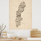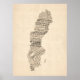 Old Sheet Music Map of Sweden Poster