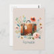 Immerse yourself in the world of adventure with our unique design postcard, which makes the heart of every traveler beat higher. Our exclusive design features a nostalgic old brown suitcase, surrounded by a picturesque setting of delicate flowers and lush leaves. This captivating picture captures the longing for distant places and new experiences perfectly. The word "distress" underscores the inexorable desire to travel and explore the world. Each view of this map will spark the desire for adventure and will remind you of past and future travel experiences. What makes this postcard special is the ability to personalize it. On the small trailer on the suitcase you can have the name of your desired destination engraved, and the word "teleweeh" can also be customized. So this card becomes a unique gift for yourself or a beloved adventurer in your life. Perfect for travelers, dreamers and explorers, this postcard is not only a decorative element, but also a source of inspiration and motivation to reach your next destinations. Send them to friends and family or keep them as a reminder of your own adventures. Let our design take you with you and bring the feeling of distress to your home!