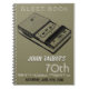 Customizable spiral notebook as 70th birthday party guest book with a retro illustration of a tape recorder. You can easily change text (font, size, color and position) and background color by clicking the personalize or customize button. Matching Birthday save the date.