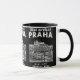Logo with view on old town Prague from Bridge Tower - black and white painted style illustration