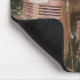 An old vintage tractor tangled in a bush of weeds photo mousepad