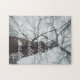 Nature themed jigsaw puzzle featuring a photo of a hollow tree trunk in the mysterious misty forest for all winter lovers. You can delete the text "The true mystery of the world is the visible, not the invisible" (Oscar Wilde) or replace it with your own message (click "Personalize this template").