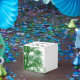 Image of an old tree with two colored tones of green. This image contains printed all-over on 5 faces of the cube. Top contains an image with small transparent squares where text (Family reunion, family name and date) is printed for customizing.
