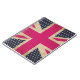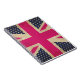An illustrated graphic design of an Old Union Jack Flag in shades of pink and white against a background color of dark blue with white hearts suitable for all zazzle products.