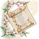 A worn looking tan and brown scroll with pink floral side border and light tan frame.