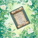 A vintage dusty green colored background covers the back and front of this invitation.