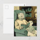 Old weasel reading a book to a young weasel postcard