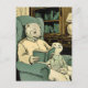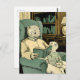 Old weasel reading a book to a young weasel postcard
