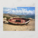 Photograph of an old, weathered, broken boat on the shore of Crete.