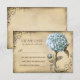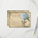 old wedding RSVP card with blue peony bloom
