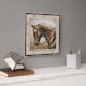 Beautifully painted portrait of a golden sorrel quarter horse with flaxen mane sporting a fancy western pleasure show bridle and saddle. Realistic artwork created from an original oil painting by equine and wildlife artist Crista S. Forest, then digitally edited to give it an aged or old photo effect in warm sepia tones, just right for decorating your rustic or ranch style country home. Accented with a matching brown background.