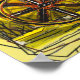 A Dark Wooden Stagecoach sits under a scorching desert sun landscape on a desolate dirt path among cactus as birds fly overhead. Old West image black coach on yellow background with a barbwire border around the outside edge of the image adding a rough persona and sharp edge of what one of the Old West's mode of transportation was.