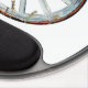 The plastic backing is nice and sturdy. The grippy pads underneath keep the mouse pad where I put it on my table. The pad the mouse sits on is cut well to fit the backing. The wrist pad is perfectly soft, supportive, and thick. I'm left-handed, and this mouse pad works just as well for me as it does for my right-handed friends. I'm the designer of HippieClecticHope products. I'm blown away by how well my intricate fractals turn out on the tangible items in the Zazzle Marketplace. This particular mouse pad ***appears*** like a 3D object... A mathematically-engineered rainbow black opal, inlaid under transparent fabric...