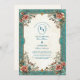 Step into timeless elegance with this vintage teal and gold floral arch wedding design. Featuring ornate architectural frames, blooming golden roses, and intricate turquoise patterns, this design is perfect for couples who adore a rich, romantic aesthetic. The warm vintage tones paired with detailed floral artwork create a luxurious and sophisticated feel, ideal for formal and destination celebrations.