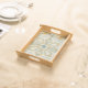 This is a well made, sturdy wooden tray with a flawless black finish and lovely map on the tray surface. It is both vintage & modern at the same time. Looks exactly like the photo; does not disappoint. So nice to find something of quality individually made and not the mass-produced 'shabby chic' merchandise seen in stores. I am so pleased to be able to give this to my college-age niece for her birthday. This can be used as a tray to hold jewelry or toiletries, or hung on the wall as art. The map surface is sealed (it is slightly shiny) so would be moisture resistant. It is well worth the asking price but I was able to apply a sale code as well. Very happy with my purchase. Map is crisp & clear and sealed with a water-resitant finish.