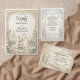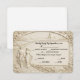 Set the tone for your formal estate wedding with this artistic design featuring a monochromatic ivory palette and a classical faux stone sculpture aesthetic.This design utilizes a trompe l'oeil technique to simulate the depth and shadow of a 3D bas-relief sculpture. The scene depicts a romantic couple walking along a cobblestone path toward a distant country chapel, framed by an ornate architectural arch and intricate rose borders. The color palette is strictly monochromatic, utilizing shades of cream, ivory, and soft grey to mimic the look of carved limestone or plaster. The typography features a formal black serif font for the header, paired with an elegant script, ensuring high contrast against the light stone-effect background.