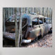 This is part of a collection of photographs I took at Old Car City USA in Georgia. Shown is a 1050s Chevy station wagon in very bad wrecked condition sitting among a grove of trees.