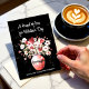 This beautiful Valentine’s Day card for a teen or adult granddaughter captures a perfect blend of artistry and warmth. A hand-painted watercolor vase filled with pink blooms and hearts is set against a bold black background, enhanced by delicate paint splatters. A unique way to remind her how deeply loved she is.
