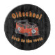 The design features a retro-style red old school van with the number "35" on the front and sides. The bus has a distinctive tuning design with a cut-off roof and a large rear spoiler, giving it a racing and hot rod look. Above it is written "Oldschool" in eye-catching vintage font, while underneath the sentence "back to the roots" underlines the nostalgic character of the design. The color palette includes warm retro tones such as red, beige, orange and black.