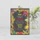 Bright and colorful Mexican fiesta party invitation with sugar skull, maracas, piñata, margarita, taco, chili pepper, guitar, sombrero,cactus with streamers on a black background. Perfect for any Mexican themed party! Hand drawn illustration by McBooboo
