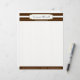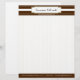 A sleek and simple design featuring brown banners across the top and bottom of the letterhead and an olive accent with faint matching stripes to add a splash of color. The top portion offers a customizeable field to add your name, below which you can add your website. Along the footer or bottom is another customizable field for your address, phone number and email. All fields are customizeable and if there is a part you do not want, simply delete the information out so the field is blank.