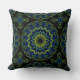 Olive-Blue on Black Kaleidoheart Throw Pillow