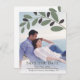 This delightful announcement features a stylized and charming Mediterranean theme that is sure to impress your prospective wedding guests. The eye-catching Save the Date postcard showcases a lovely photo of the happy couple along with a delicate olive branch that exudes a touch of elegance. This design is perfect for couples who appreciate simple yet sophisticated aesthetics and who wish to add a personal touch to their wedding invitations. The olive branch symbolizes peace and unity, which is precisely what you want to convey to your guests as you invite them to share in your special day.