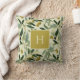 Olive Branch Monogram Initial Botanical Throw Pillow