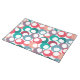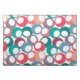 This cloth placemat has mid-century modern design of circles in blue, teal, pink, purple and berry with white ovals inside.