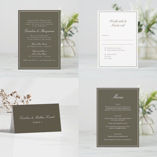 Olive Classic Border Script Elegant Wedding RSVP Invitation