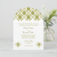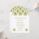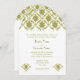 Plain white envelopes are included with paper invitations and will come to fit the invitation size you select. If you don’t need the envelopes, you may choose to not receive them by selecting the dropdown below "Envelopes" and choosing "None." If you’d like to have a design on your envelopes, you can browse all of these available envelopes to find the design that complements your Olive Damask Wedding Invitation.