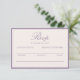 This mauve garden wedding RSVP card completes your romantic summer suite with refined elegance. Designed in graceful calligraphy over soft muted mauve tones, it captures the charm of a blooming garden celebration with subtle quiet luxury styling. Perfect for the bride who loves delicate color and cohesive stationery details. Pair with matching invitations, QR cards, or ivory envelopes for a polished look. Personalize response wording and dates for a seamless guest experience.