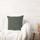 Greenish gray throw pillow with a floral pattern of rose buds, blooming flowers, dots, swirls, leafy shapes, and more.