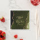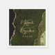 These elegant modern wedding napkins feature an olive green watercolor agate geode background trimmed with faux gold glitter. Personalize them with the names of the couple in gold-colored handwriting calligraphy over a large ampersand, and the wedding date in copperplate font.