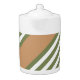 Olive green and white five stripe pattern with tan teapot