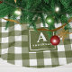 Olive Green And White Gingham Plaid Monogram Brushed Polyester Tree Skirt