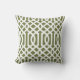 Olive Green and White Trellis Pattern Throw Pillow