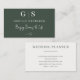 An organic and refined business card in deep olive green and soft porcelain white. Featuring a clean monogram, elegant script tagline, and a minimalist botanical detail — perfect for creatives, designers, and wellness professionals.