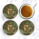 I'm not sure how much moisture these will soak up, haven't had a chance to try them out, but they look good and I like the cork backing. The printing is fine ~ and really looks cool with an artisan's hand made "Hurricane Martini" glass sitting on top of my painting (on the coaster) in my studio.