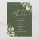 This elegant olive green botanical greenery floral save-the-date invitation can be personalized with your information in chic typography with your wedding website QR code and details on the reverse. Designed by Thisisnotme©