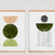 Olive green geometric shapes, mid century modern art