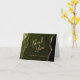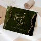 This trendy modern wedding thank you card features an olive green watercolor agate background trimmed with faux gold glitter. The customizable text features the words "Thank You" in gold-colored handwriting script. Add the names of the bride and groom below.