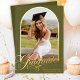 Honor your graduate's achievement with this elegant olive green and gold-themed graduation announcement. Featuring a bold gold-foil "Graduate" calligraphy script, and space for a large photo in a modern arched frame, this design exudes sophistication and charm. Perfect for high school or college graduations, it blends modern style with timeless elegance. Personalize with your details to create a memorable keepsake.