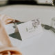 Classy and fancy wedding place card designed for a clean and elegant old money reception table setting. This folded escort card features a handwritten script wedding name paired with contemporary typography. The olive green wedding decor adds a fresh, stylish touch to your wedding. Perfect as a custom guest name card for a chic and simple wedding celebration. Use this elegant folded place card to elevate your modern reception table decor. A sophisticated contemporary wedding table card that complements any minimalist wedding theme.