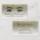 This glamorous modern business card features a sketch of two eyes with elegantly arched eyebrows in black on a background image of olive green marble. A sprinkling of gold faux glitter decorates the top edge of the card. Personalize it with your name in black handwriting-style script and title and contact information in black sans serif font.