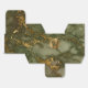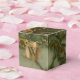This favor box features an olive green marble background with gold highlights. Personalize the front with your initial in dark olive green on a double-bordered faux gold brushed metal foil circle.