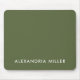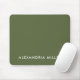 Elevate your work setup with this sleek and stylish Olive Green Minimalist Monogram Mouse Pad. The design features your name in a simple yet stylish white font on an olive-green background. The smooth and durable surface ensures precise mouse movement and the non-slip backing keeps it securely in place. Perfect for both work and play, this mouse pad is a must-have for any desk.