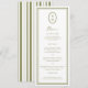 Trending olive green monogram wedding menu for a modern elegant wedding reception. This refined long menu design reflects quiet luxury and modern botanical aesthetics, perfect for the sophisticated contemporary bride planning a vineyard, garden, or coastal celebration. Style with olive linens, gold flatware, and minimalist place settings for a chic editorial tablescape.