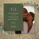 This chic minimalist wedding save-the-date card can be personalized with your monogram initials and wedding day details on an olive green background. With your special photo on the reverse. Designed by Thisisnotme©